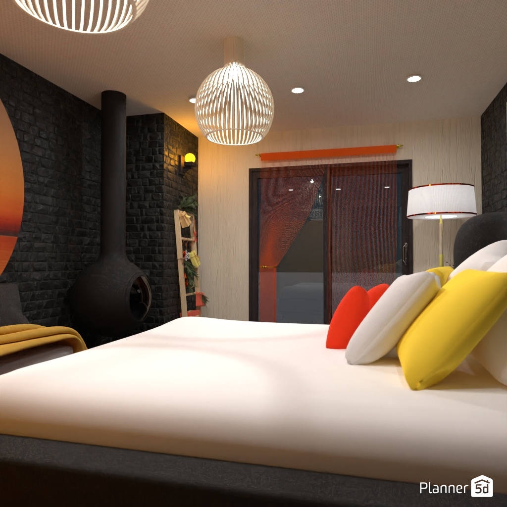 Create a bedroom interior that is associated with winter.