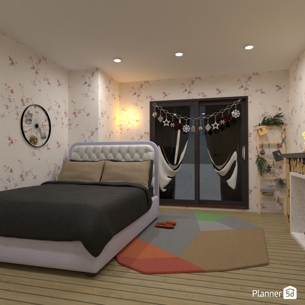 Create a bedroom interior that is associated with winter.