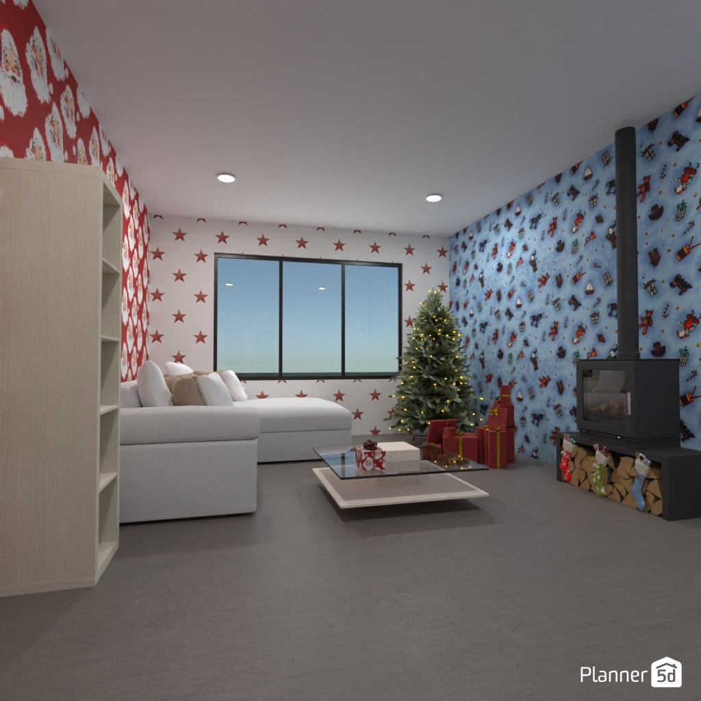Create a festive living room interior for Christmas.