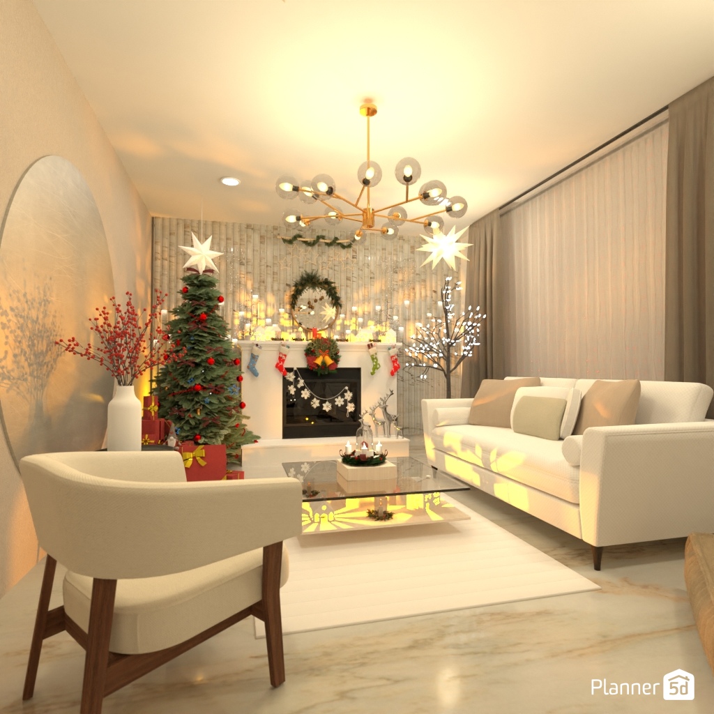 Create a festive living room interior for Christmas.