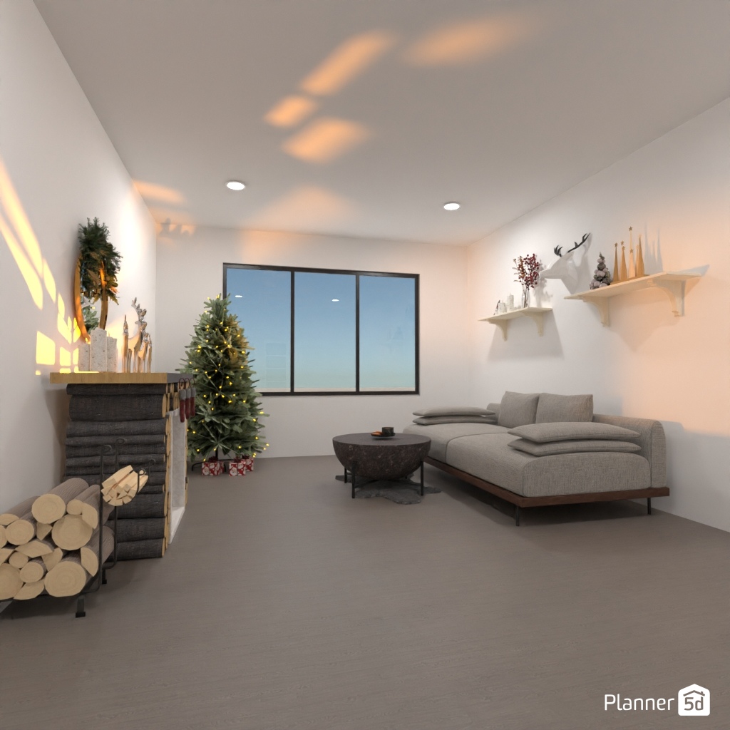 Create a festive living room interior for Christmas.
