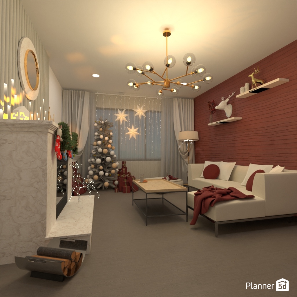 Create a festive living room interior for Christmas.