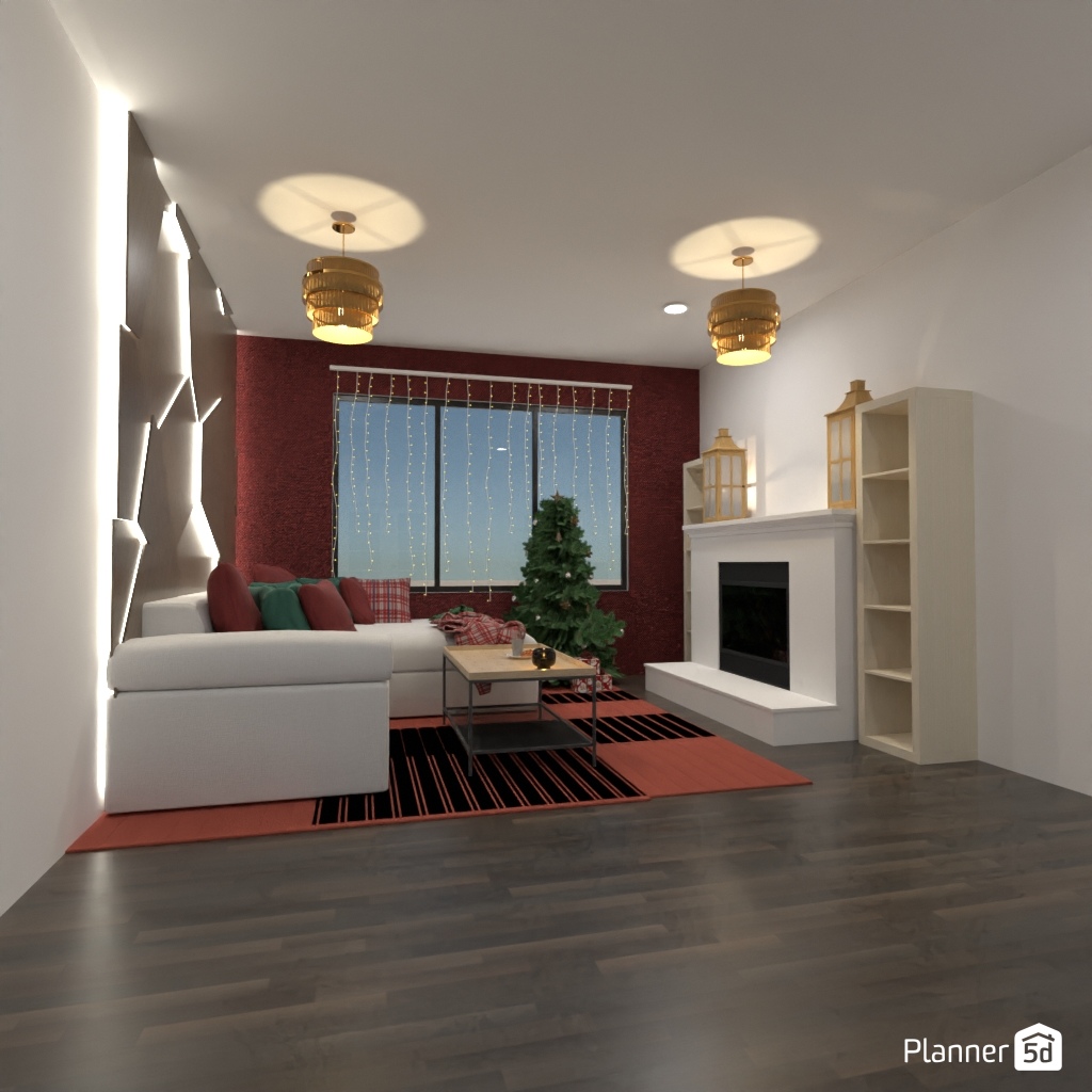 Create a festive living room interior for Christmas.
