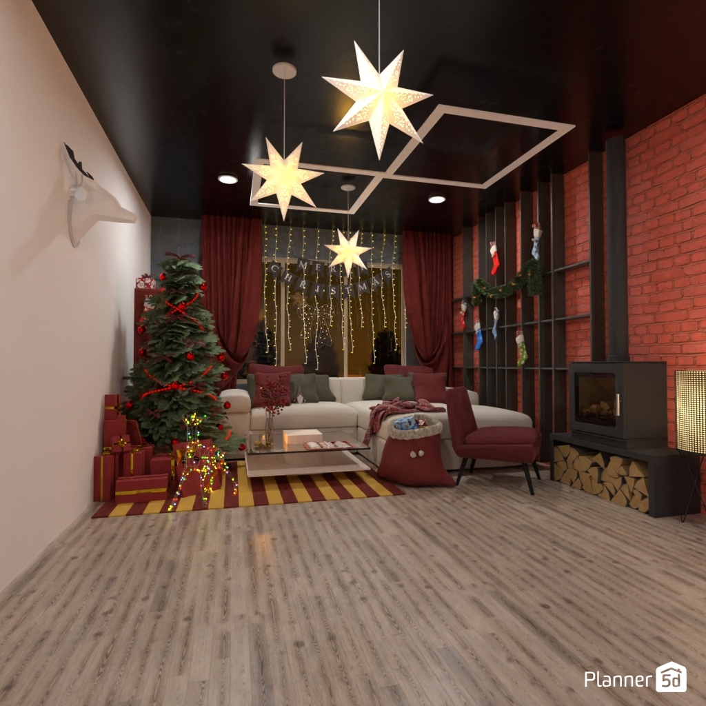 Create a festive living room interior for Christmas.