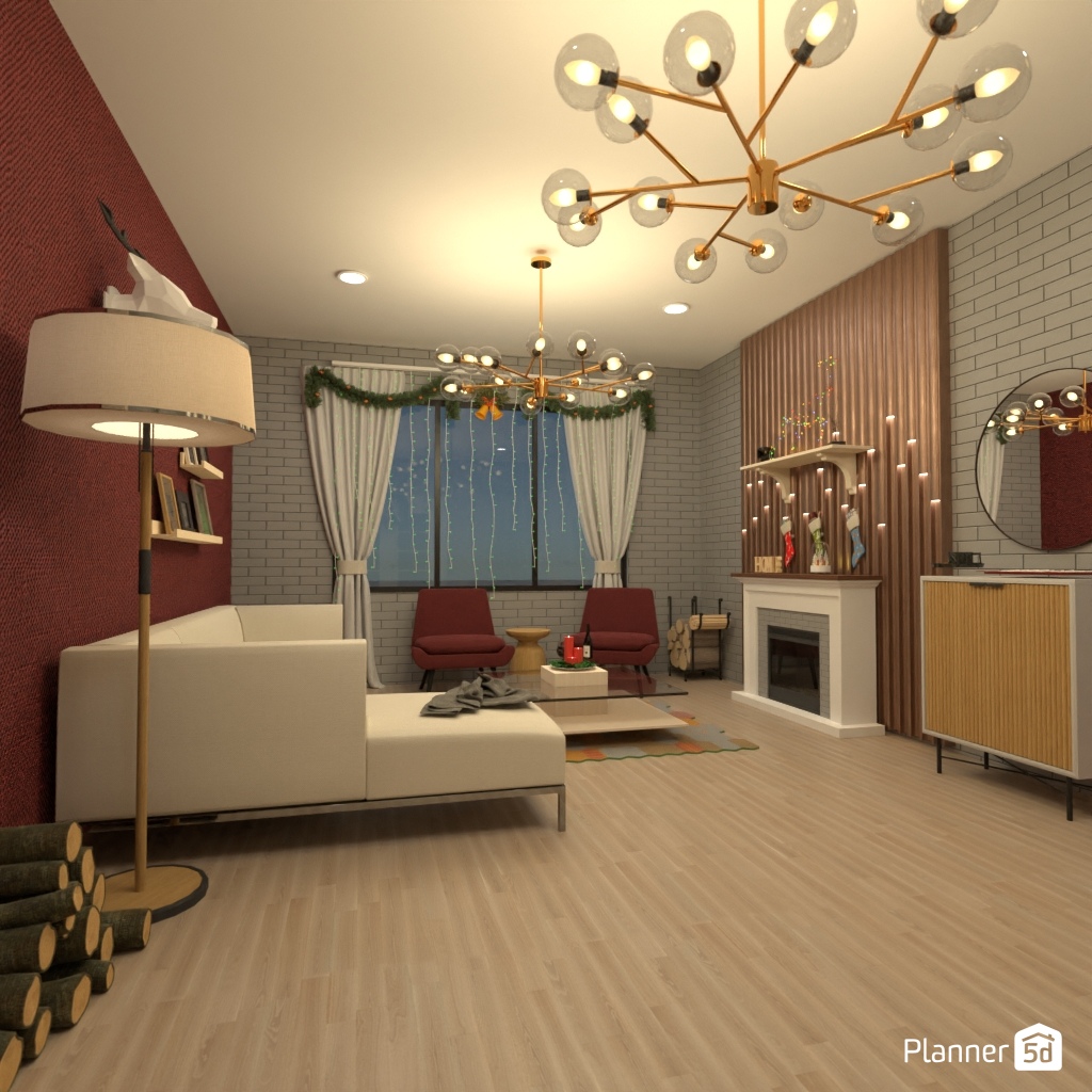 Create a festive living room interior for Christmas.