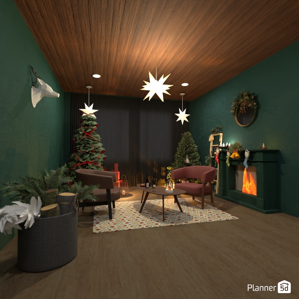 Create a festive living room interior for Christmas.