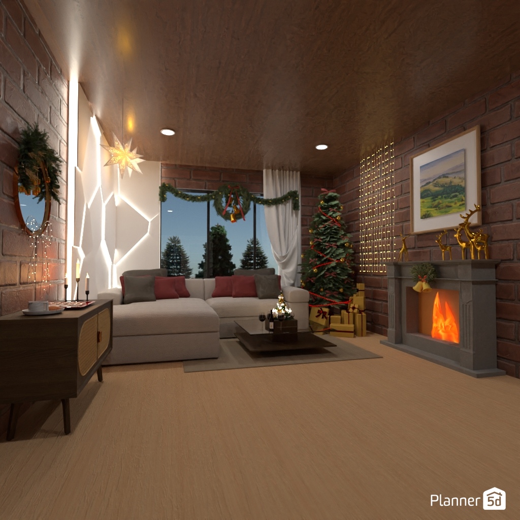 Create a festive living room interior for Christmas.