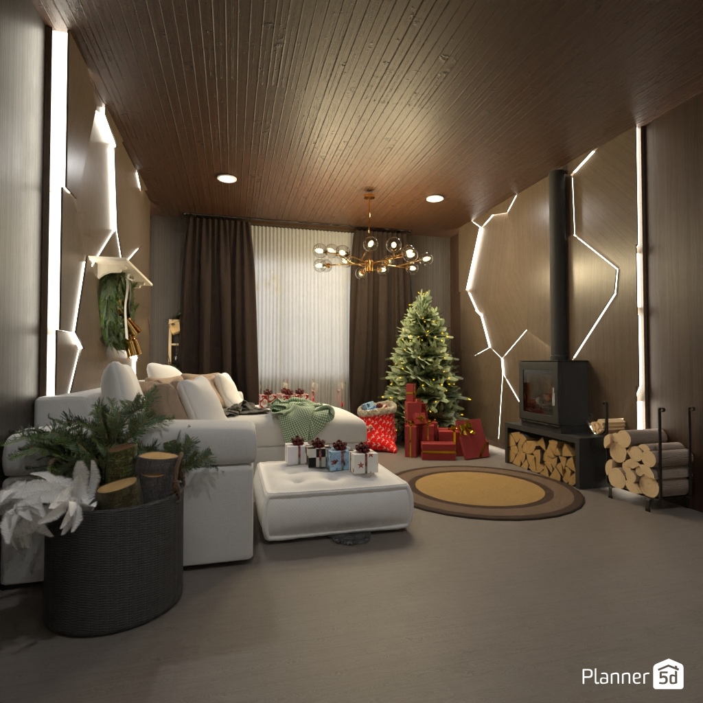 Create a festive living room interior for Christmas.
