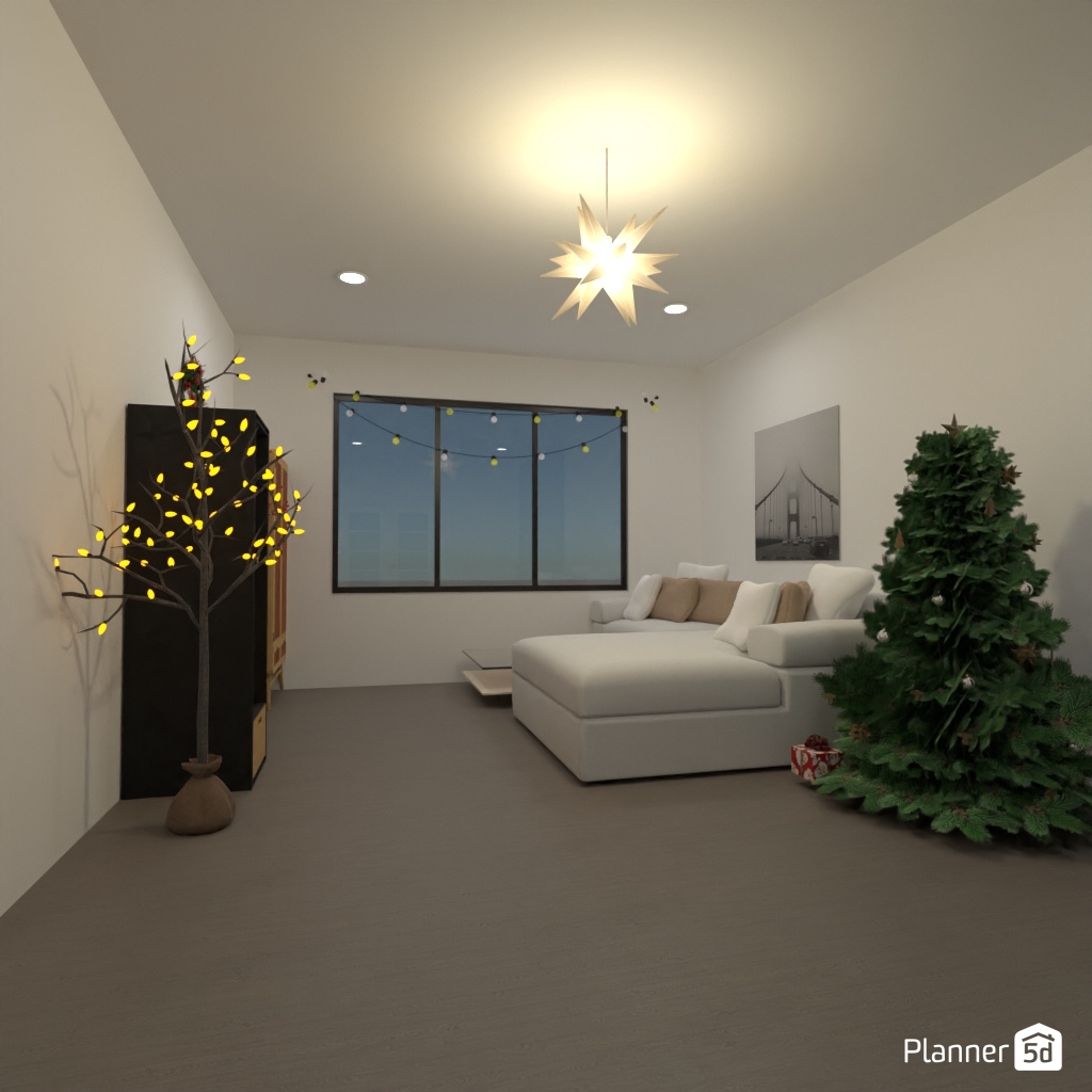 Create a festive living room interior for Christmas.
