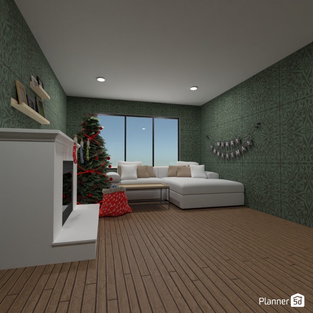 Create a festive living room interior for Christmas.
