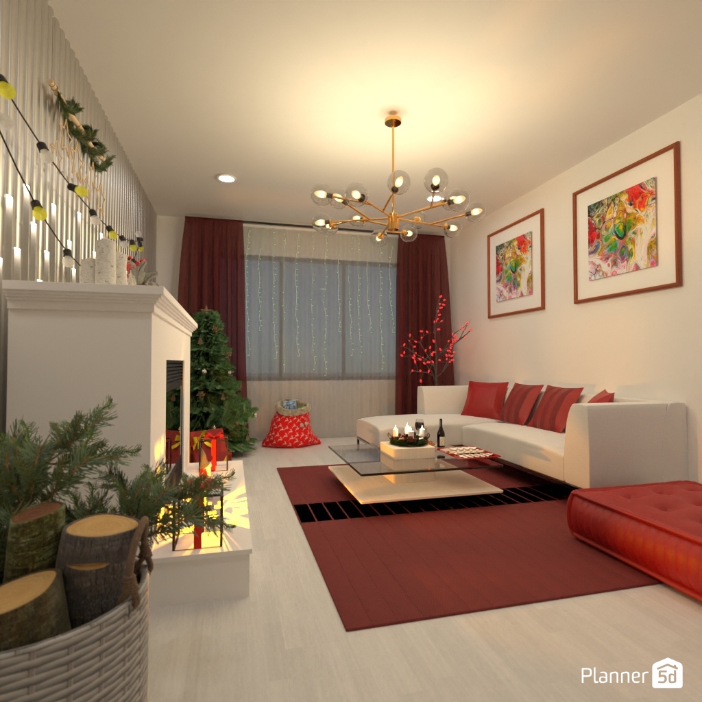 Create a festive living room interior for Christmas.