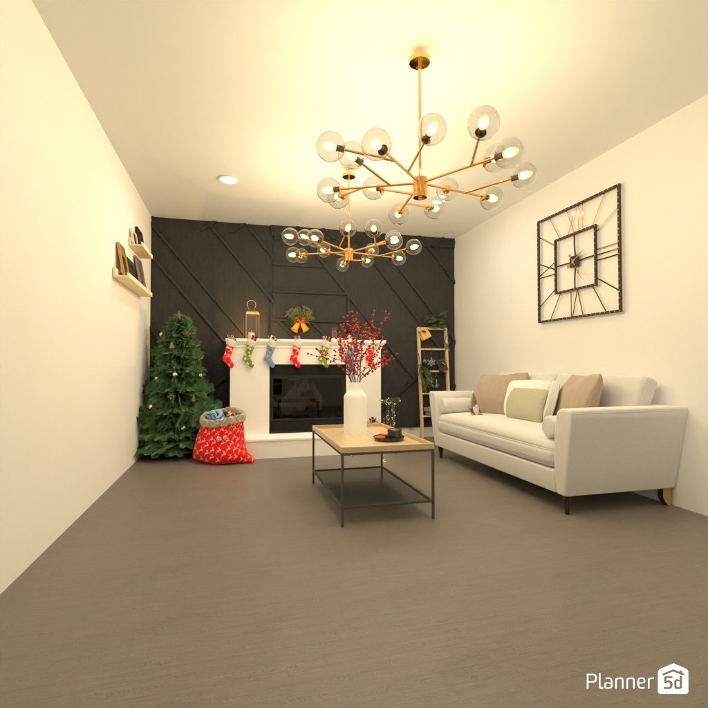 Create a festive living room interior for Christmas.