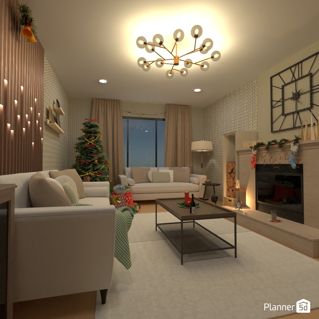 Create a festive living room interior for Christmas.