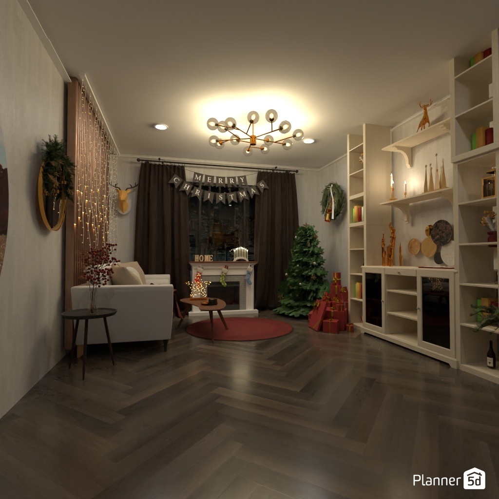 Create a festive living room interior for Christmas.