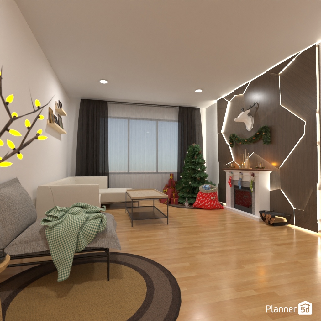 Create a festive living room interior for Christmas.