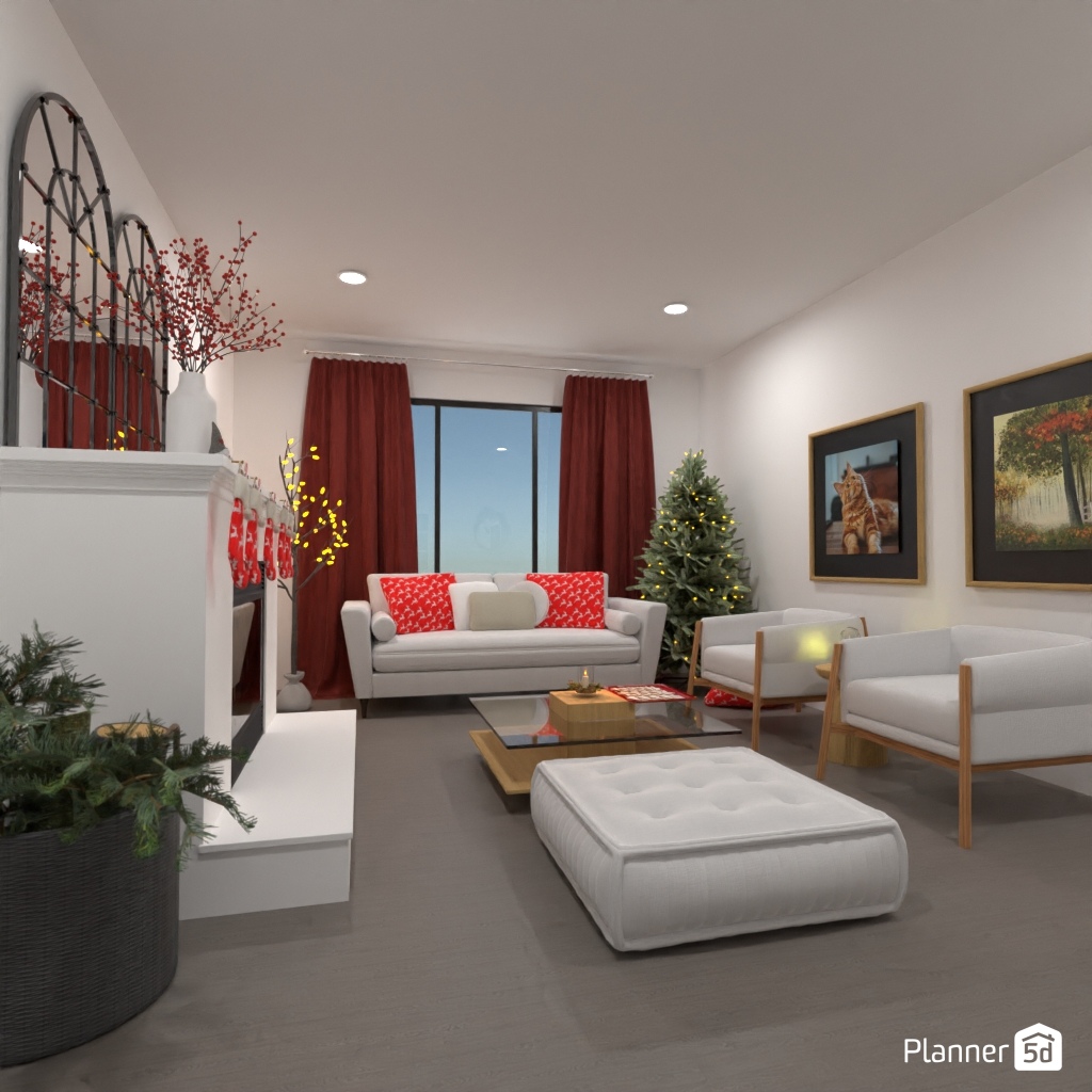 Create a festive living room interior for Christmas.