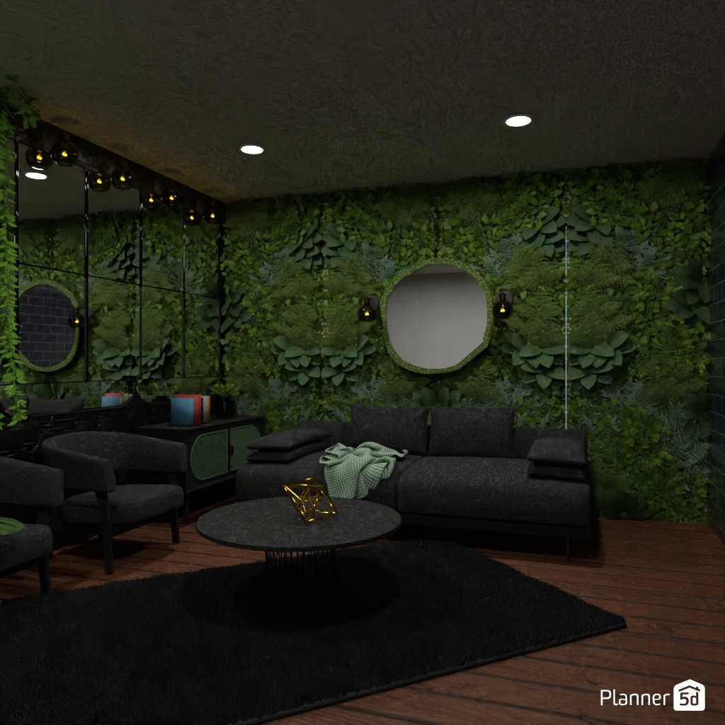 Design the living room with a mirror accent wall.
