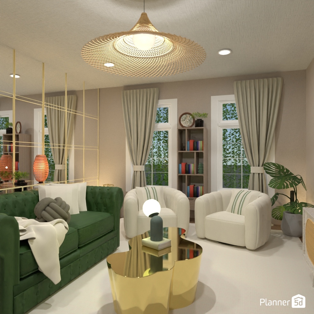 Design the living room with a mirror accent wall.