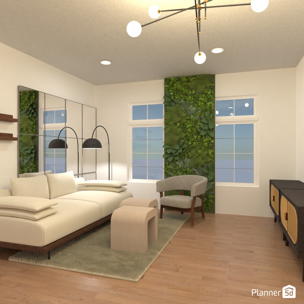 Design the living room with a mirror accent wall.