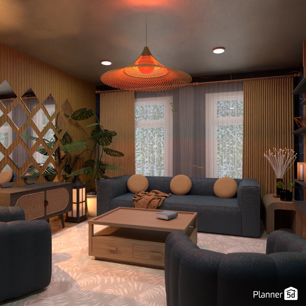 Design the living room with a mirror accent wall.