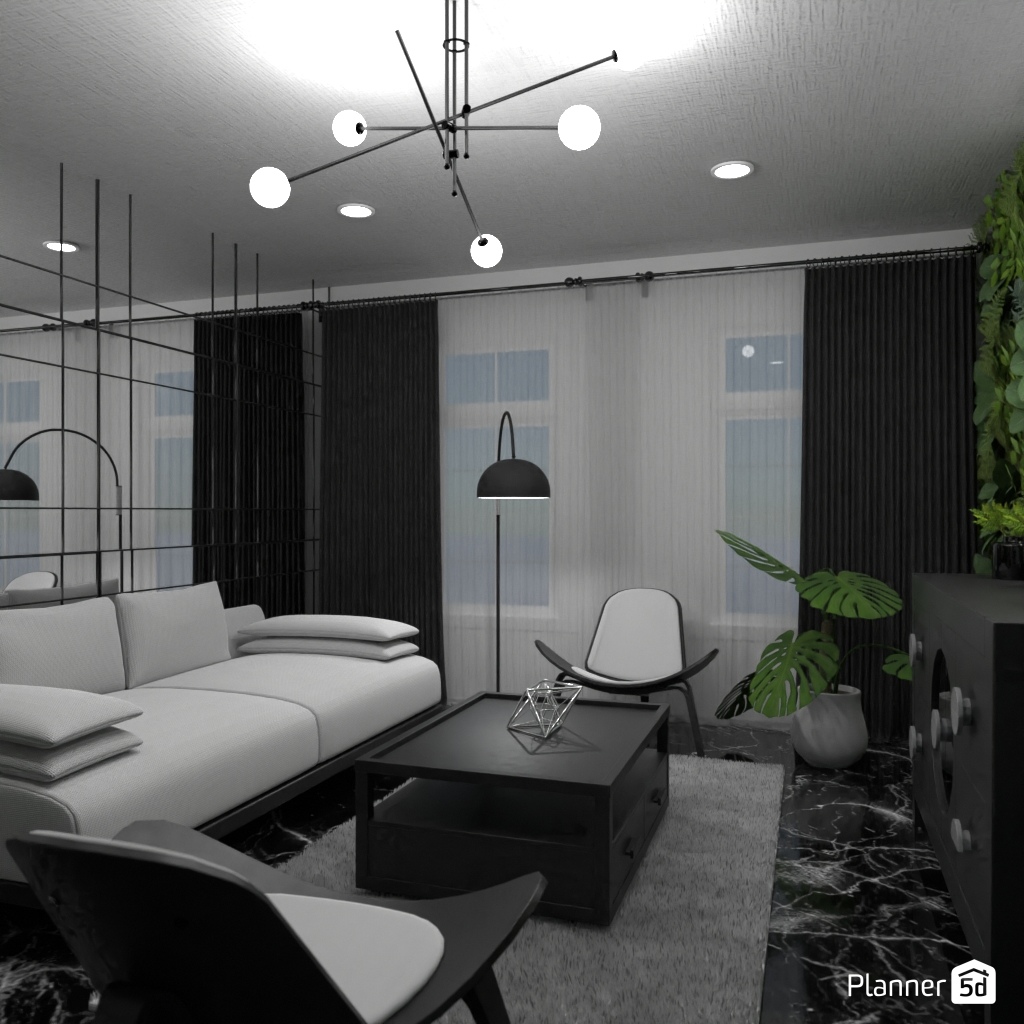 Design the living room with a mirror accent wall.