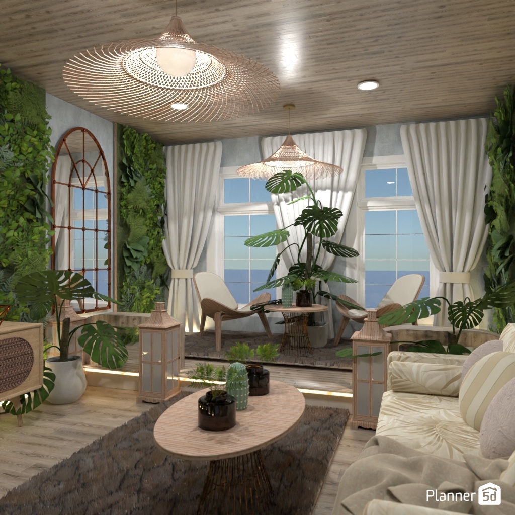 Design the living room with a mirror accent wall.