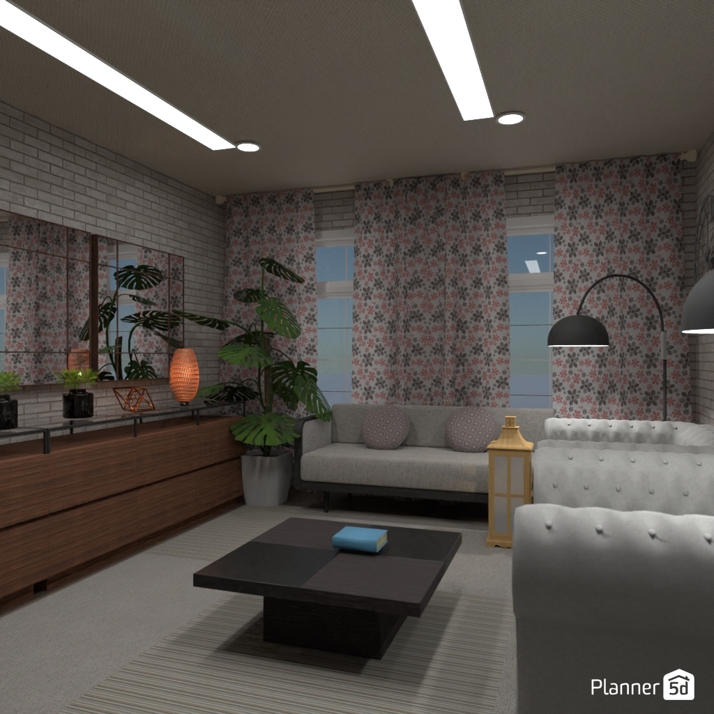 Design the living room with a mirror accent wall.