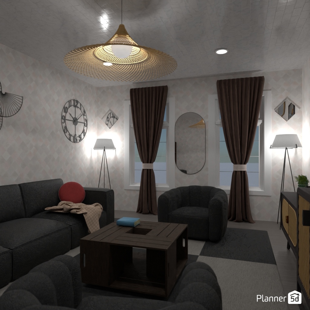 Design the living room with a mirror accent wall.
