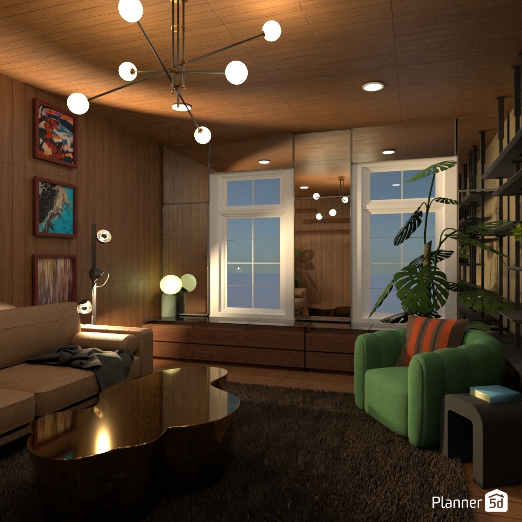 Design the living room with a mirror accent wall.