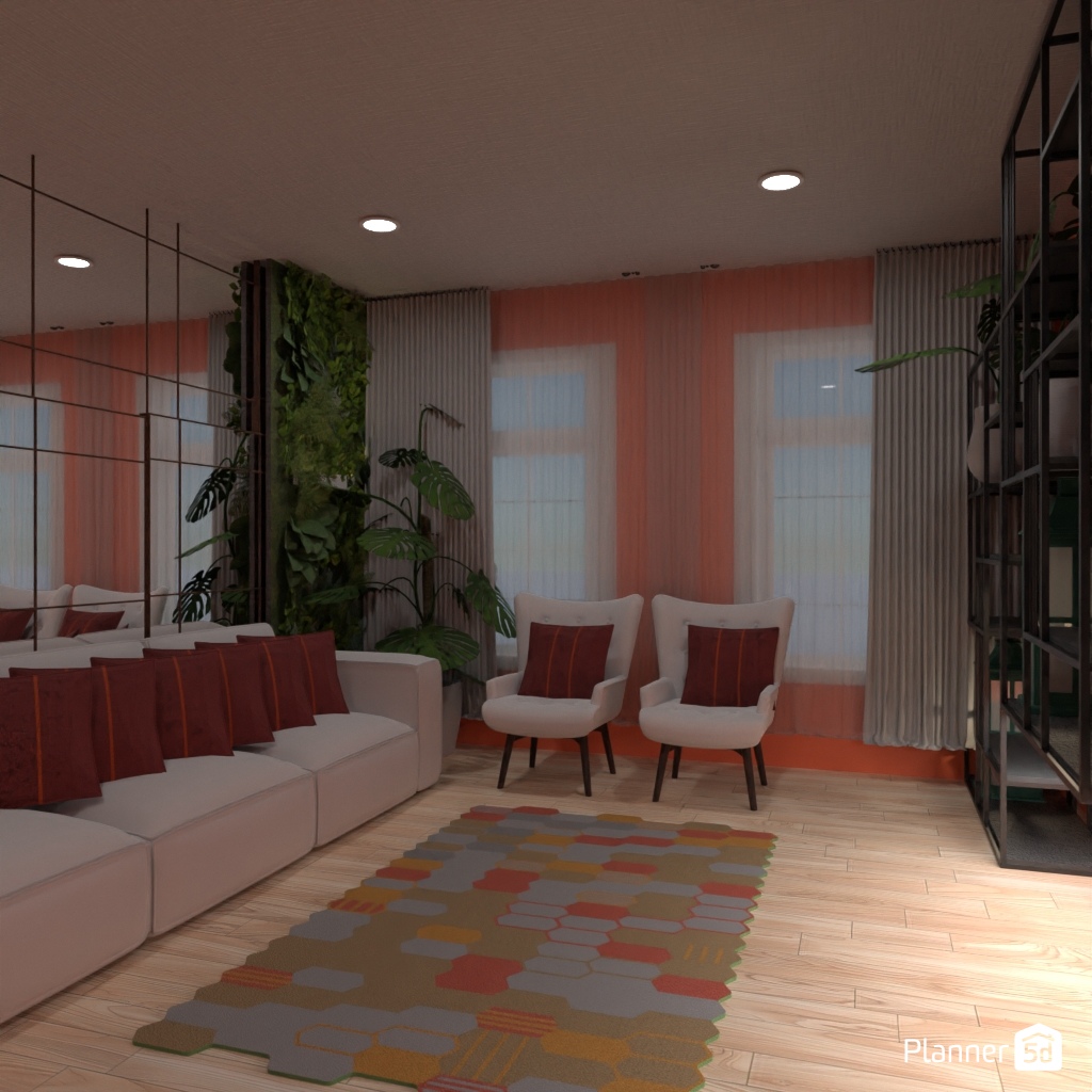 Design the living room with a mirror accent wall.