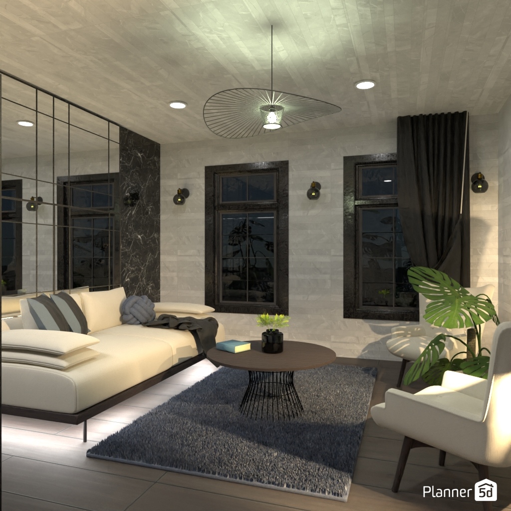 Design the living room with a mirror accent wall.