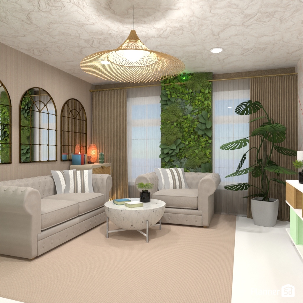 Design the living room with a mirror accent wall.