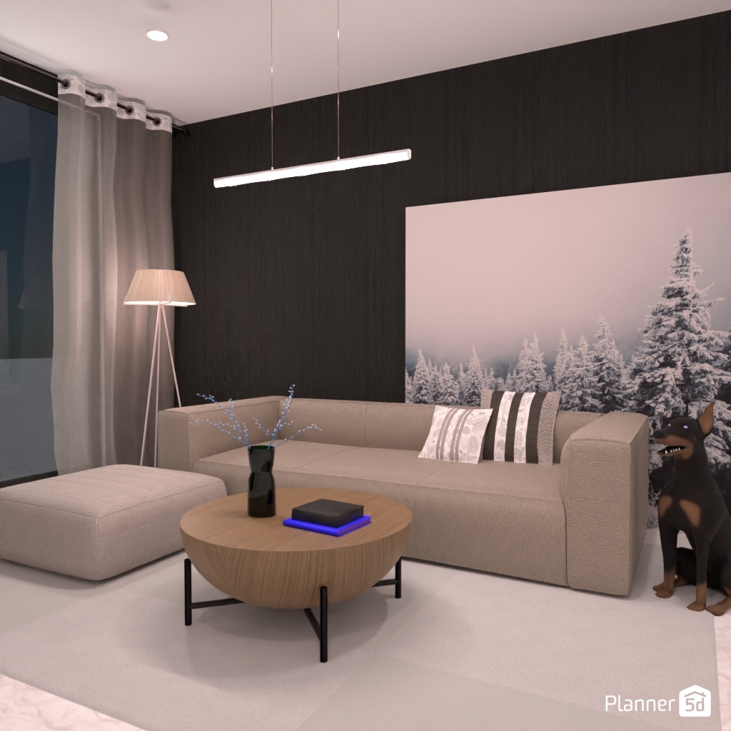 Paint a modern minimalist living room interior.