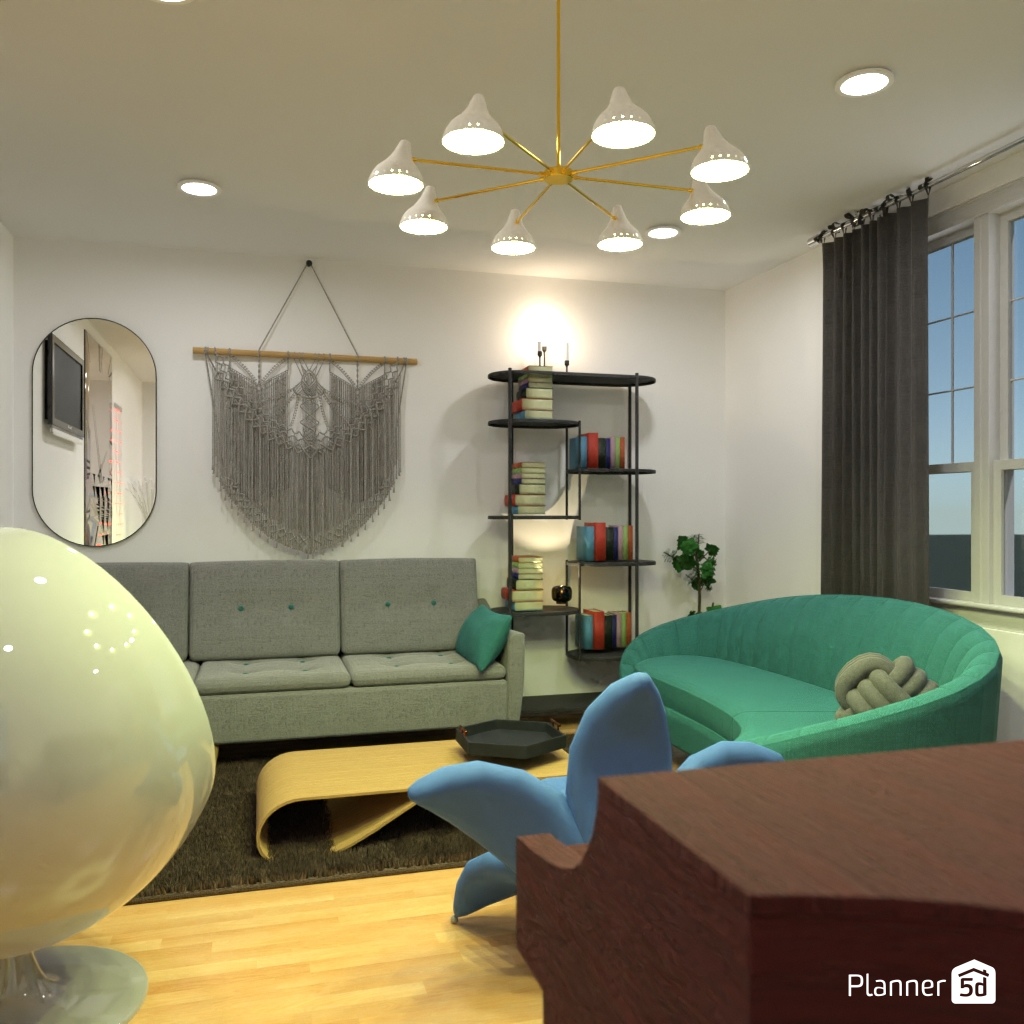 Design the living room interior with pastel colors.