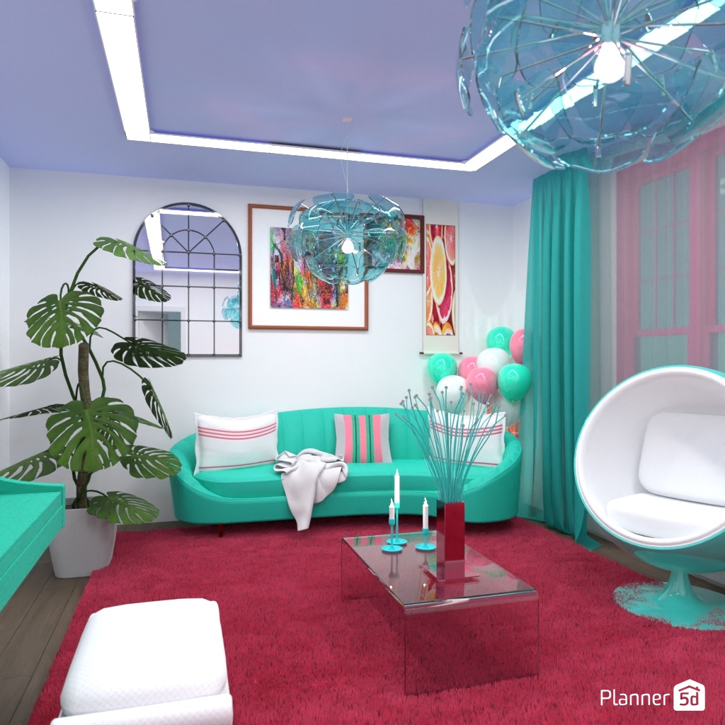 Design the living room interior with pastel colors.
