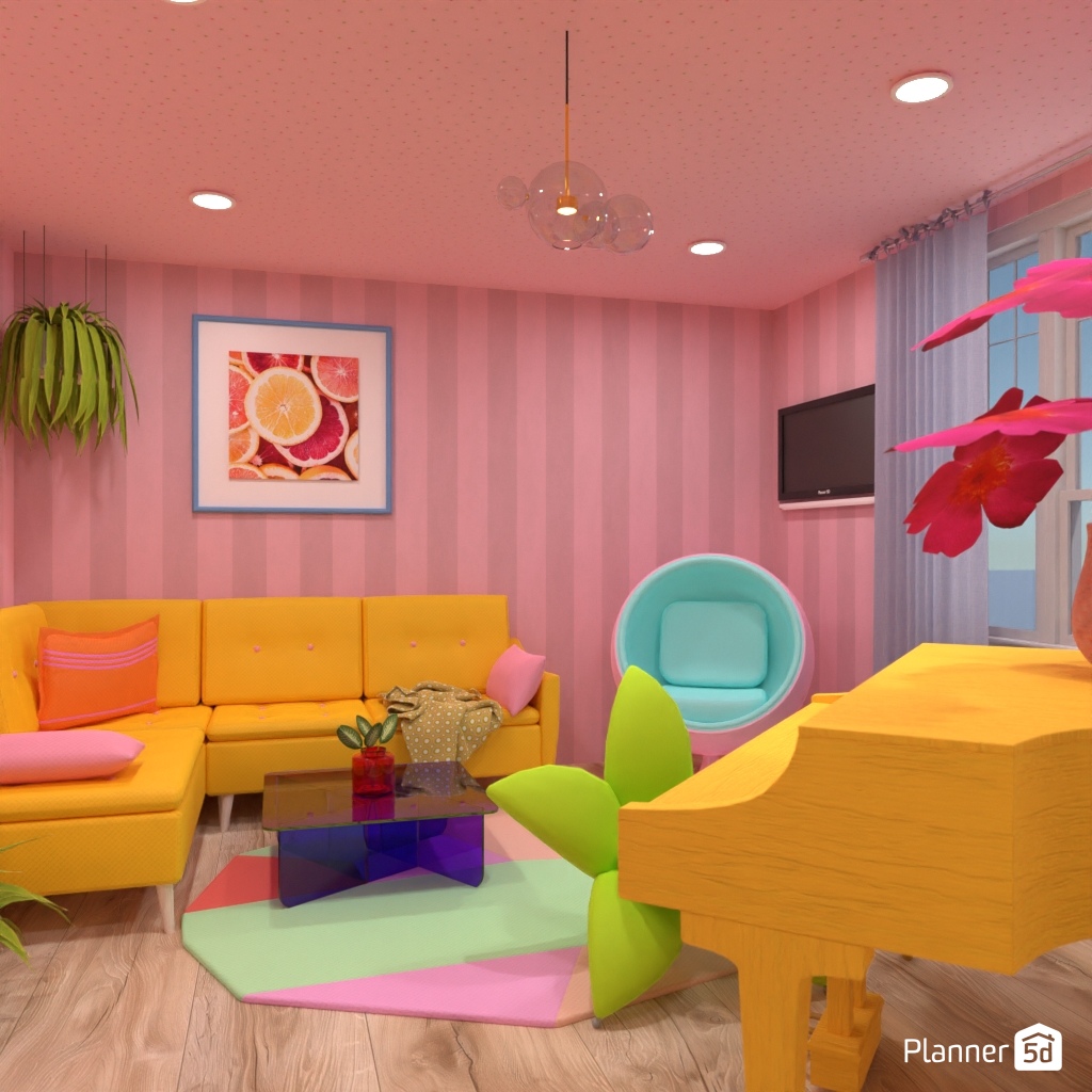 Design the living room interior with pastel colors.
