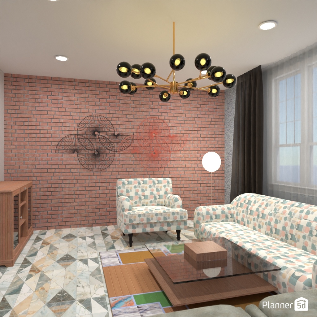 Design the living room interior with pastel colors.