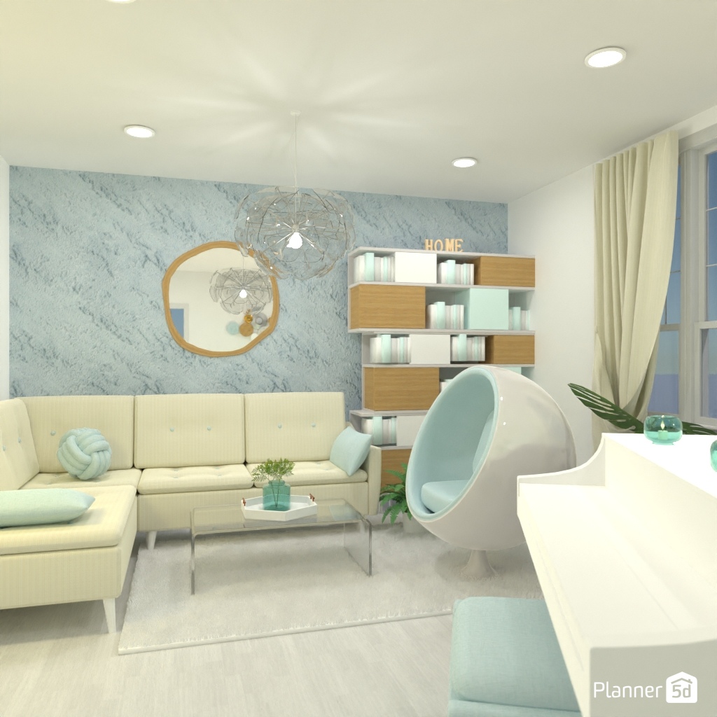 Design the living room interior with pastel colors.