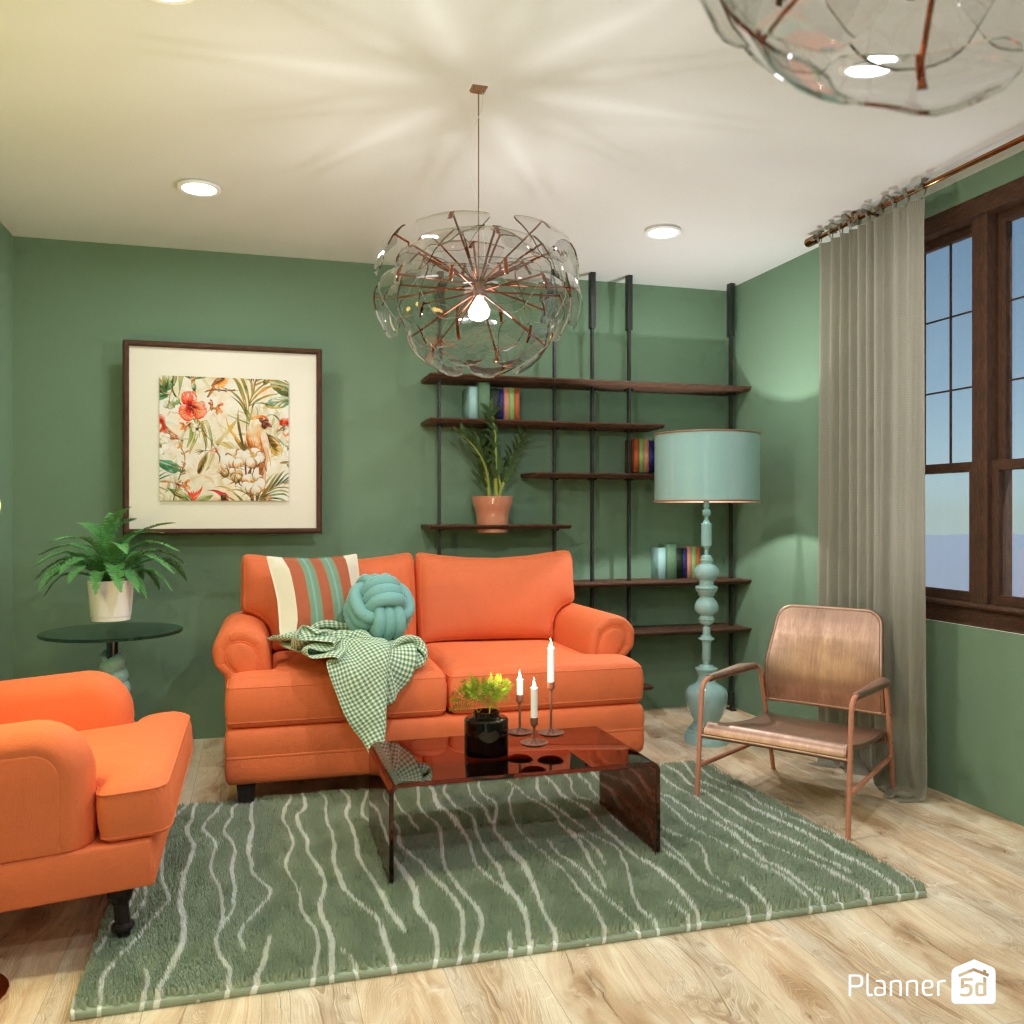 Design the living room interior with pastel colors.