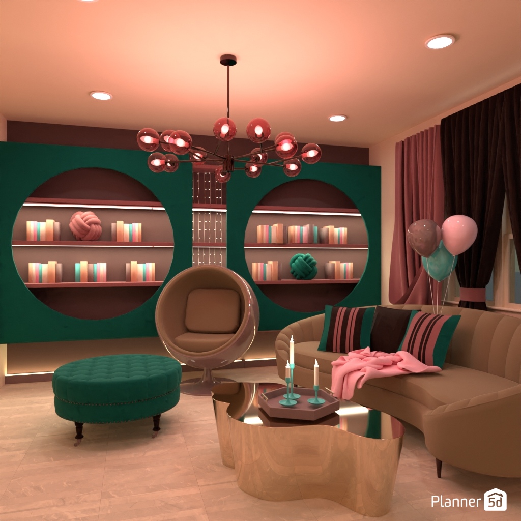 Design the living room interior with pastel colors.