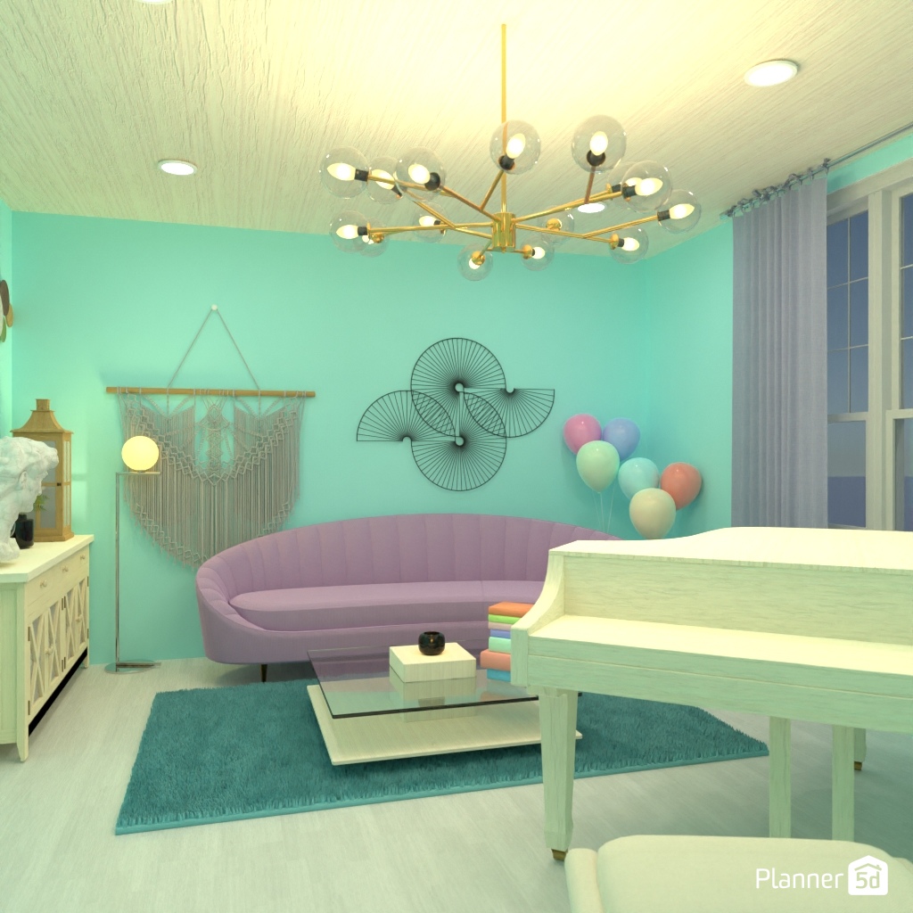Design the living room interior with pastel colors.
