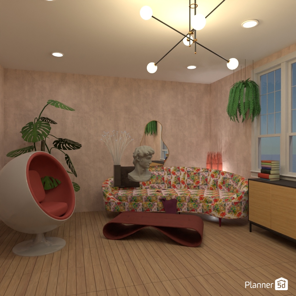 Design the living room interior with pastel colors.