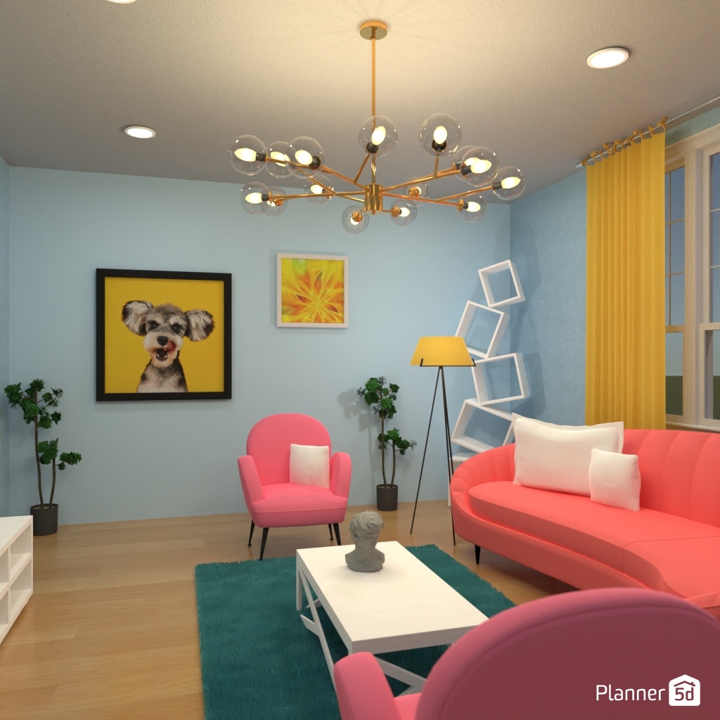 Design the living room interior with pastel colors.