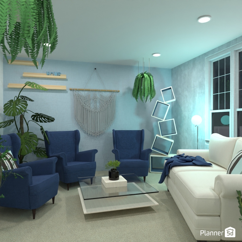 Design the living room interior with pastel colors.