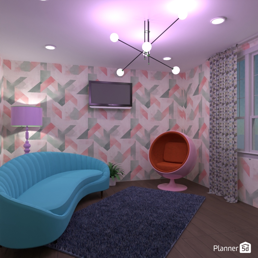 Design the living room interior with pastel colors.