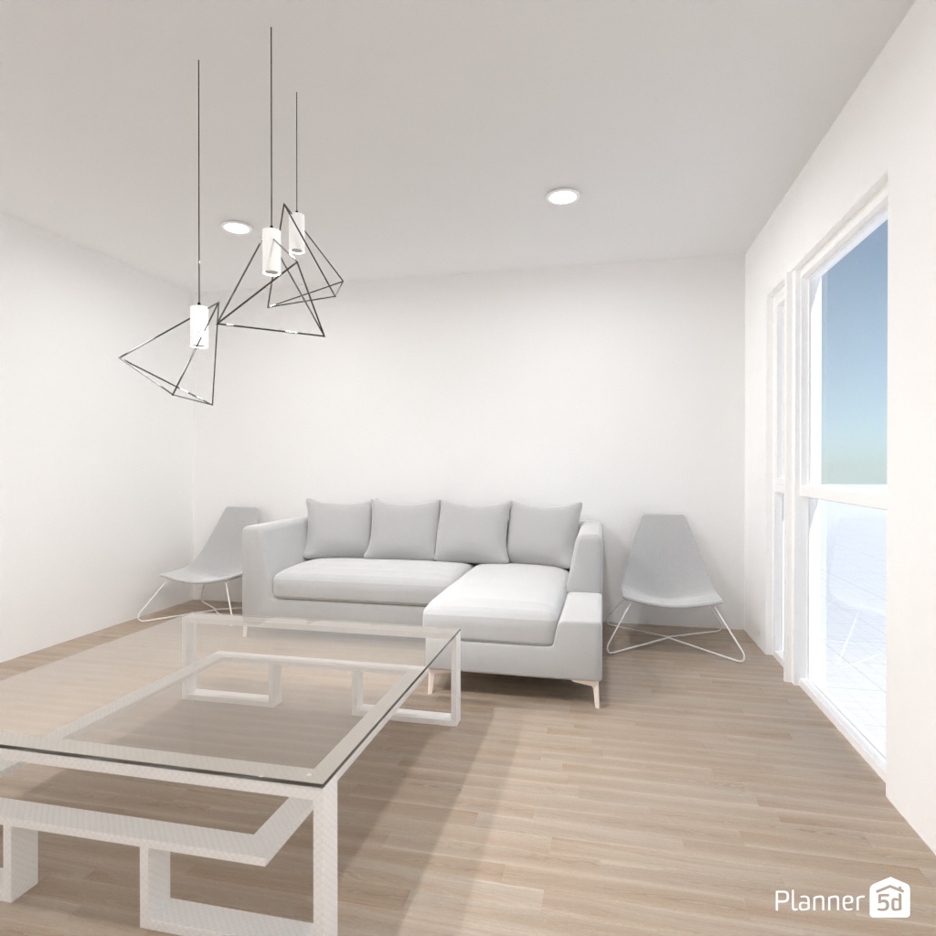 Design a living room interior with different geometric shapes.