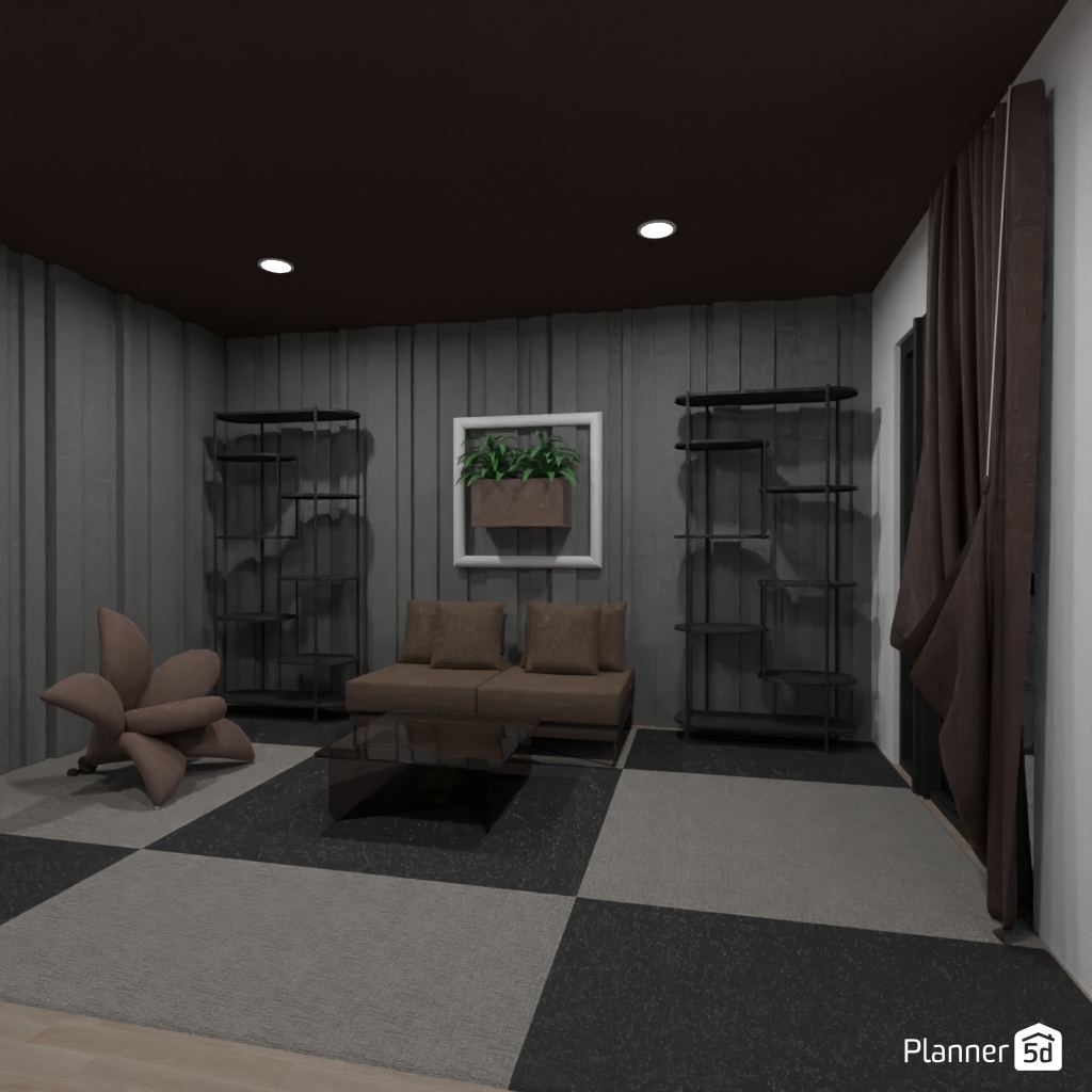 Design a living room interior with different geometric shapes.