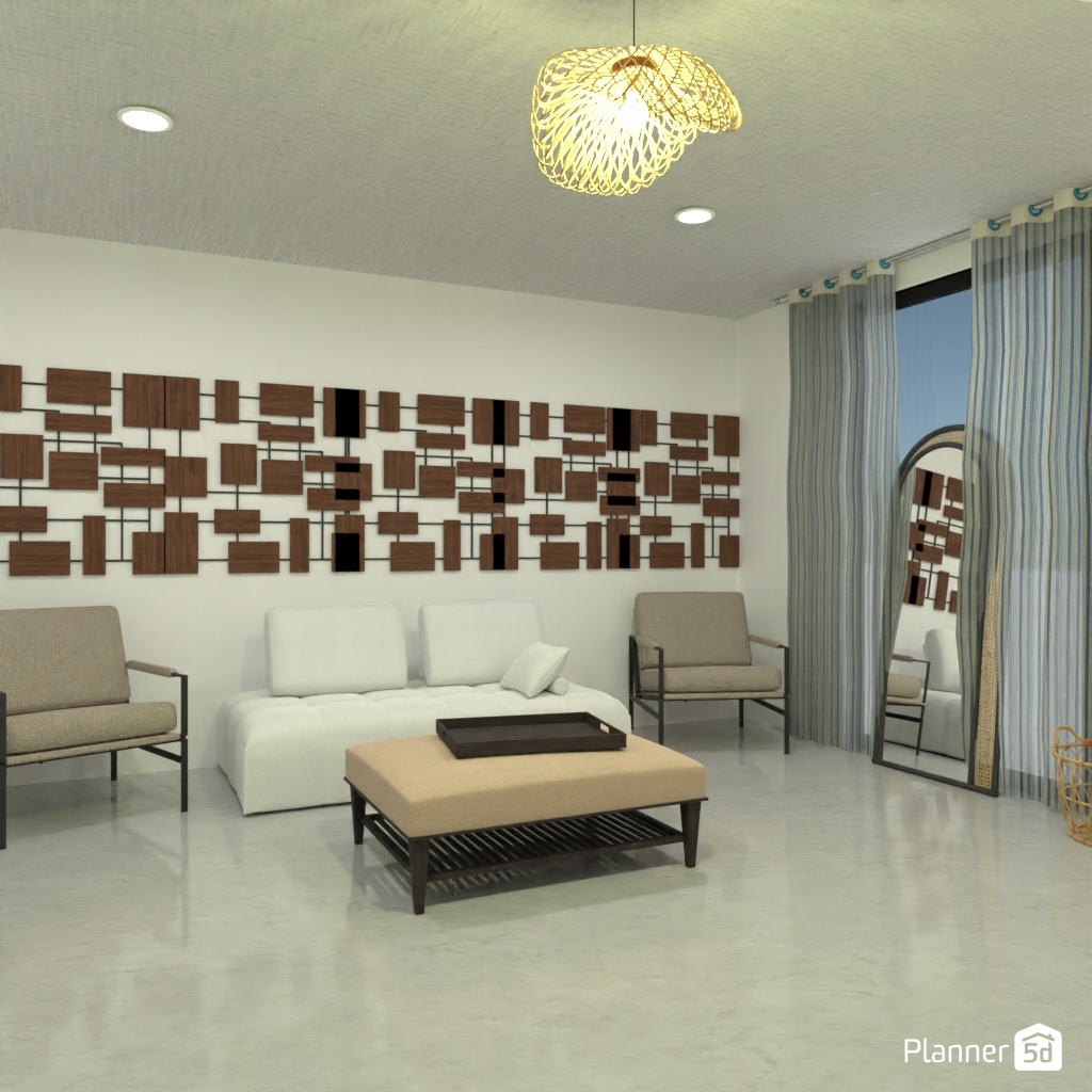 Design a Living room in Japandi interior style.