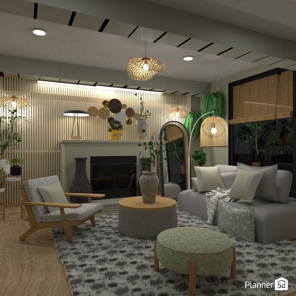 Design a Living room in Japandi interior style.