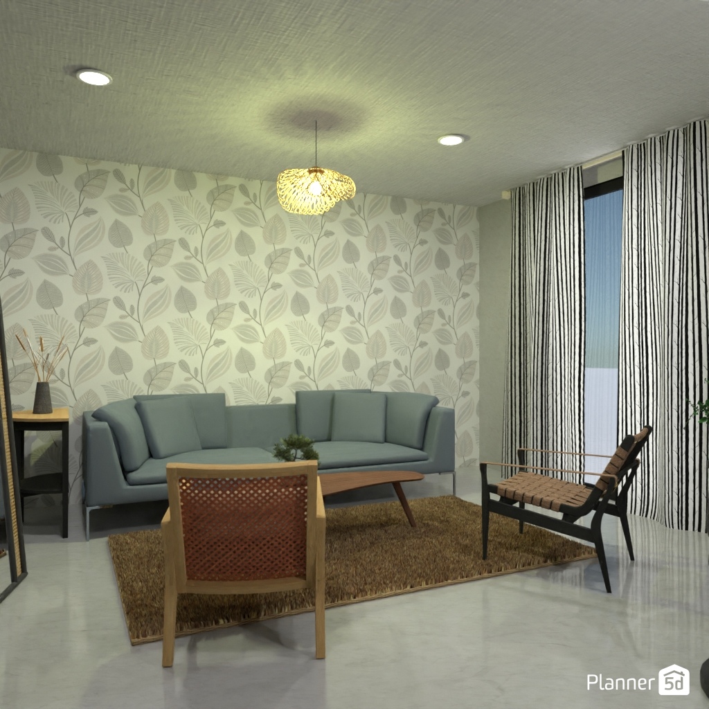 Design a Living room in Japandi interior style.